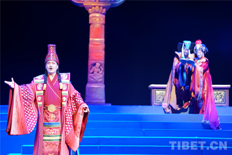 圖為《金城公主》演出現(xiàn)場,吐蕃贊普赤德祖贊(左) 攝影:蔣馨悅