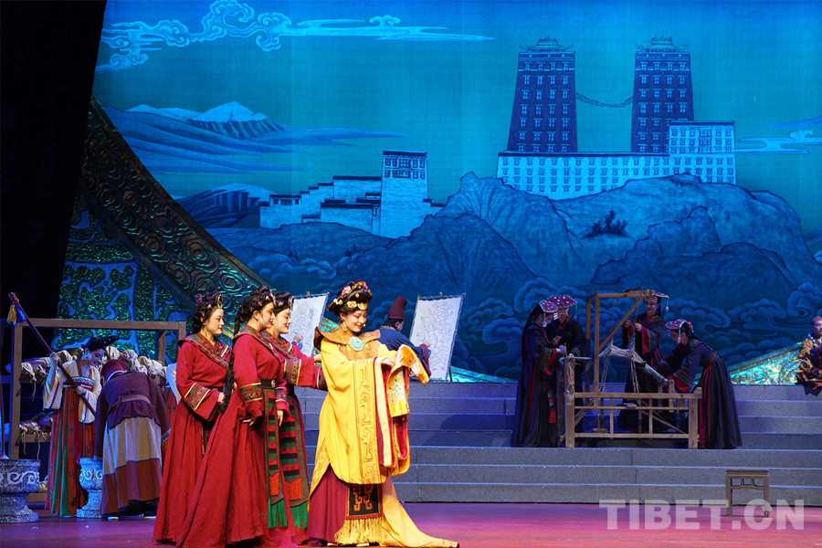 圖為《金城公主》演出現(xiàn)場,金城公主在吐蕃傳播文明 攝影:蔣馨悅