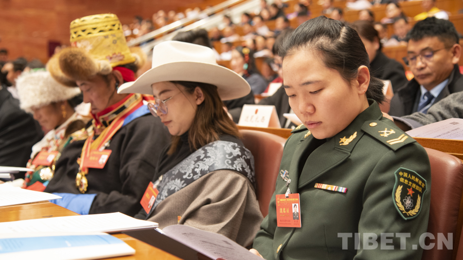 圖為西藏自治區(qū)人大代表聆聽人大常委會工作報告 攝影:趙振宇