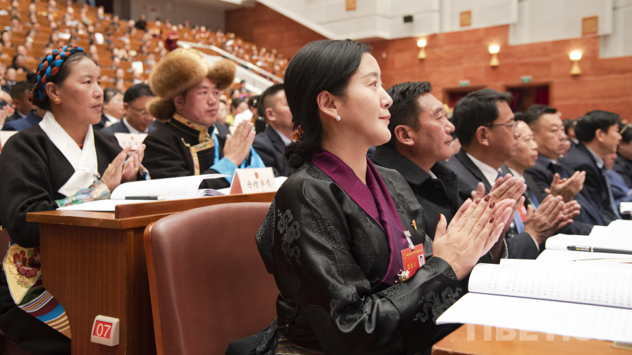 圖為洛桑江村受西藏自治區(qū)人大常委會委托作西藏自治區(qū)人民代表大會常務(wù)委員會工作報告 攝影:趙振宇