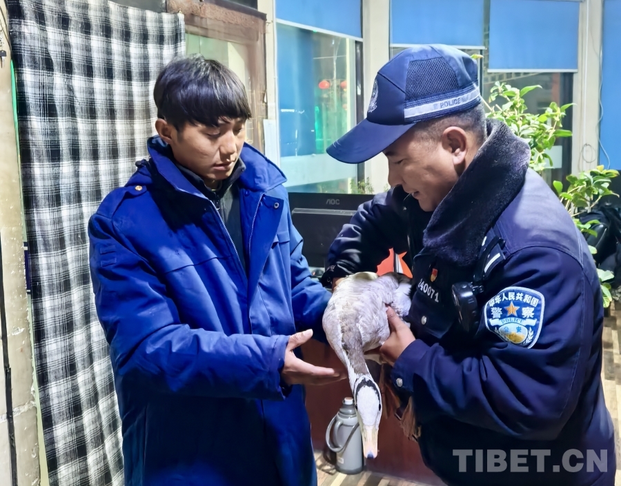 中國西藏網(wǎng)訊 2月16日下午,西藏日喀則仁布縣公安局強(qiáng)欽街便民警務(wù)站民輔警在開展巡邏時,在路邊人行道上發(fā)現(xiàn)一只受傷被困的“大鴨子”,疑似野生保護(hù)動物。