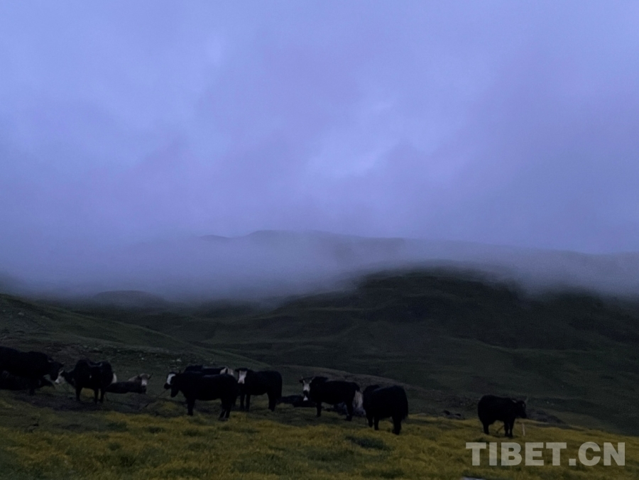 過了一會兒,天邊漸漸卷起了一個白邊,然后越來越大。后來,遠(yuǎn)處的山、河、帳篷、牛羊都逐漸清晰了。這時,我們的工作也接近尾聲。一回頭,看到我家?guī)づ耥數(shù)臒焽枥锷鹆搜U裊炊煙,我知道,爸爸已經(jīng)準(zhǔn)備好了早餐,等著我們回家了。(中國西藏網(wǎng) 實習(xí)生/扎西央措)