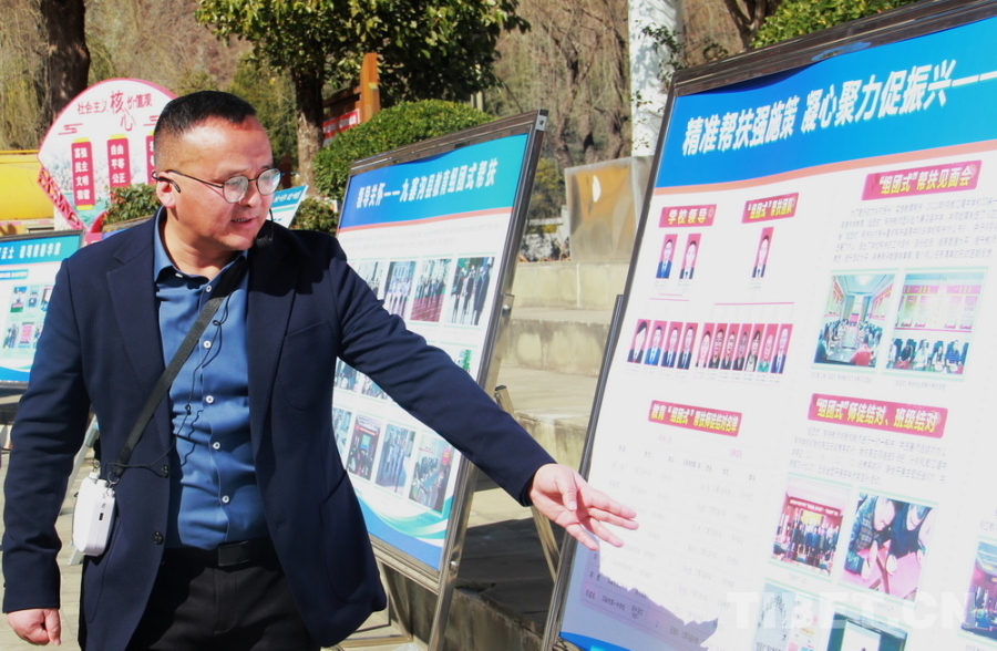 圖為來自四川省都江堰中學(xué)、現(xiàn)任九寨溝縣中學(xué)校校長的李智介紹九寨溝縣組團(tuán)式教育援藏成果 攝影:劉莉