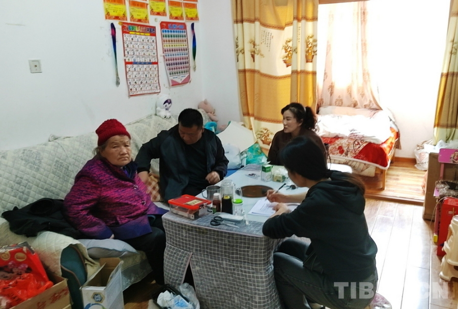 圖為四川省阿壩州九寨溝縣南坪鎮(zhèn)南坪社區(qū)黨支部書記曹玉珍(左三)到社區(qū)居民家中走訪(曹玉珍供圖)
