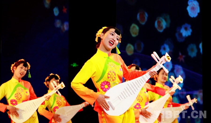 圖為“在云端·我的援藏故事”宣傳活動(dòng)在四川省阿壩州九寨溝縣開展宣講活動(dòng)現(xiàn)場(chǎng),演員們以九寨溝縣地方傳統(tǒng)音樂、國家級(jí)非物質(zhì)文化遺產(chǎn)南坪曲子中的“采花”調(diào)創(chuàng)作的《盼紅軍》表達(dá)對(duì)援藏干部人才的敬意 攝影:劉莉