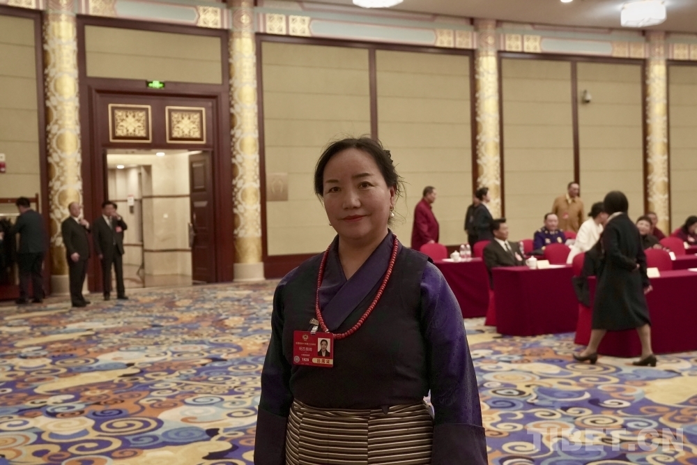 圖為明吉措姆在全國(guó)政協(xié)十四屆三次會(huì)議民族界小組會(huì)議上發(fā)言攝影:楊眉笑