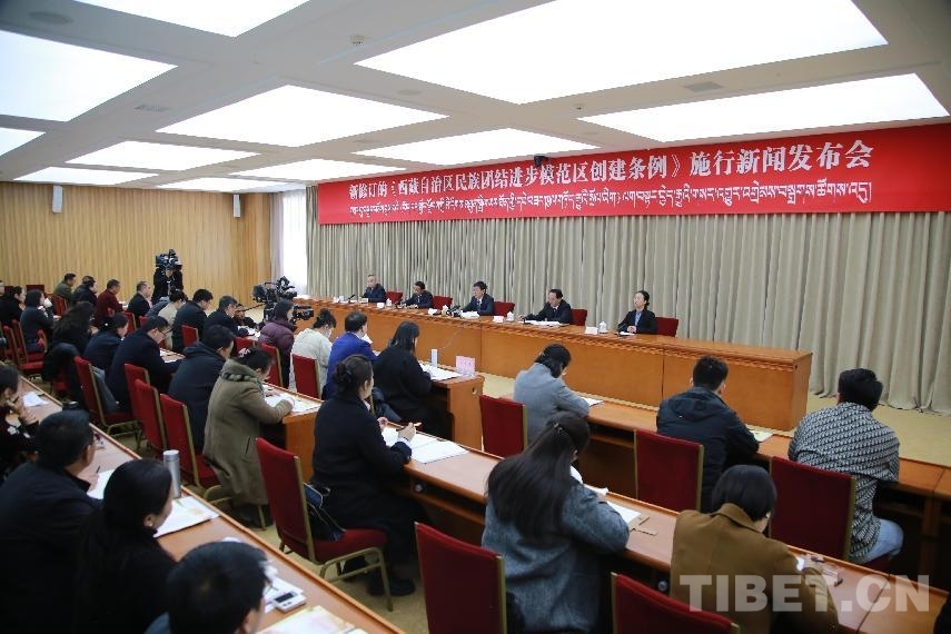 新修訂的《西藏自治區(qū)民族團結(jié)進步模范區(qū)創(chuàng)建條例》施行新聞發(fā)布會現(xiàn)場。攝影:趙釗