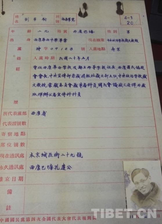 1931年,劉家駒加入中國國民黨,成為早期藏族黨員之一。他不僅出席了中國國民黨四中全會,還參加了國民政府在洛陽召開的國難會議,并將自己的著作《康藏的過去和現(xiàn)在》分發(fā)給與會人士,大聲呼吁大家重視康藏工作。同年11月21日,“西康旅京同鄉(xiāng)國防救亡會”成立,劉家駒被選舉為會長,在9名執(zhí)行理事中,有6名是藏族,分別為劉家駒(格桑群覺)、江安西(洛松鄧珠)、馬定西、佛平西、楊紹西、馮云仙(女)?!秶勚軋?名人錄》第8卷20期專門對時年29歲的劉家駒進(jìn)行了介紹。此時的他,已經(jīng)是中央政治學(xué)校(蒙藏政治訓(xùn)練班)的藏文教授,在教育領(lǐng)域發(fā)揮著重要作用,為培養(yǎng)了解藏族文化和語言的人才貢獻(xiàn)力量,為邊疆治理提供智力支持。