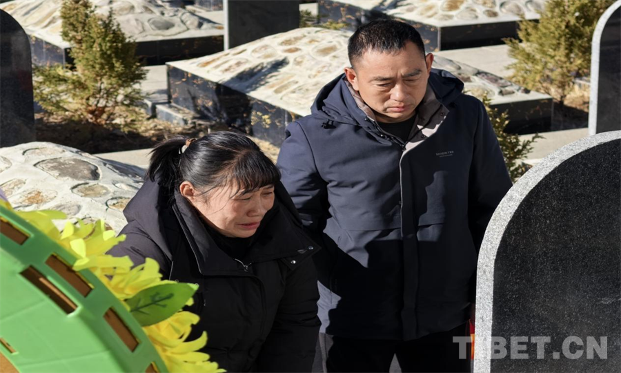 近日,在洛隆縣烈士陵園內(nèi),一場(chǎng)莊嚴(yán)肅穆又飽含深情的祭掃活動(dòng)在這里舉行。重慶籍烈士蔣必清之女蔣華英,在丈夫及重慶潼南區(qū)退役軍人事務(wù)局優(yōu)撫科有關(guān)人員的陪同下,跨越千里來(lái)到陵園內(nèi),終于與56年未曾謀面的父親“相聚”。蔣華英女士緩緩走向父親的墓碑,輕輕擺上祭品,淚水奪眶而出,用顫抖的雙手撫摸著墓碑上父親的名字,傾訴著多年來(lái)的思念。