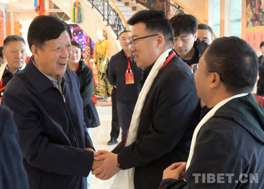 圖為金書波歡迎西藏自治區(qū)民營(yíng)企業(yè)家學(xué)習(xí)參觀團(tuán)抵京