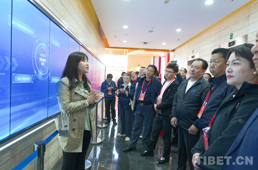 圖為西藏自治區(qū)民營企業(yè)家學(xué)習(xí)參觀團(tuán)成員與新東方人員交流互動 攝影:王茜