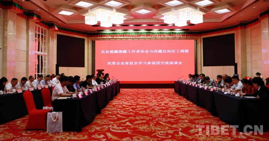 圖為北京建藏援藏工作者協(xié)會(huì)與西藏自治區(qū)工商聯(lián)民營企業(yè)家赴京學(xué)習(xí)參觀團(tuán)一行舉行交流座談會(huì) 攝影:劉莉