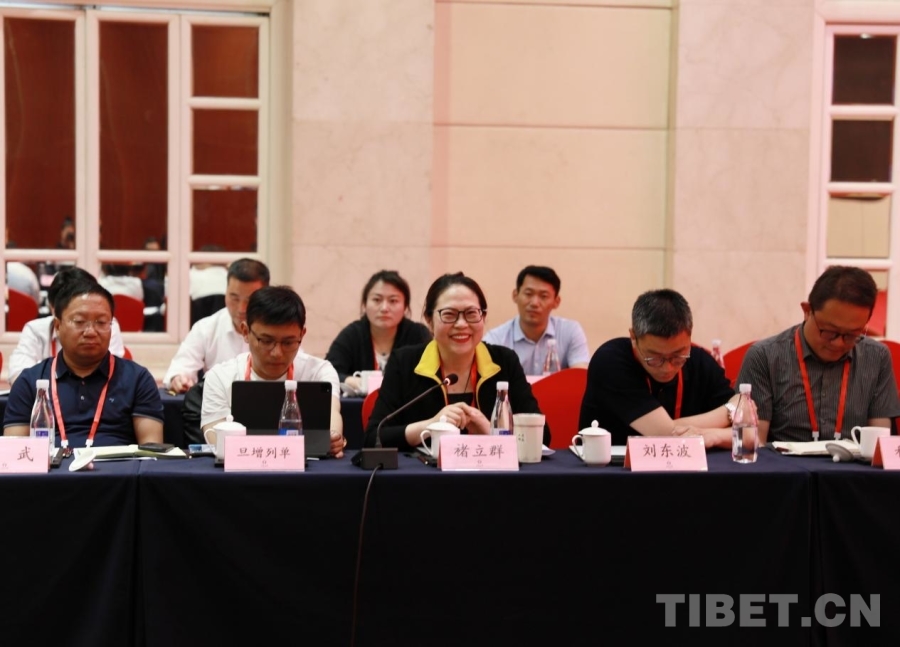 圖為西藏自治區(qū)政協(xié)黨組成員、副主席、區(qū)工商聯(lián)主席、總商會(huì)會(huì)長多吉次珠(前排左三)發(fā)言 攝影:劉莉