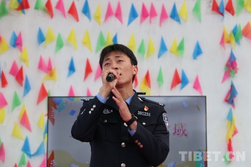 圖為錯那邊境檢查站民警為晚會獻(xiàn)上藏語歌曲《囊謙》