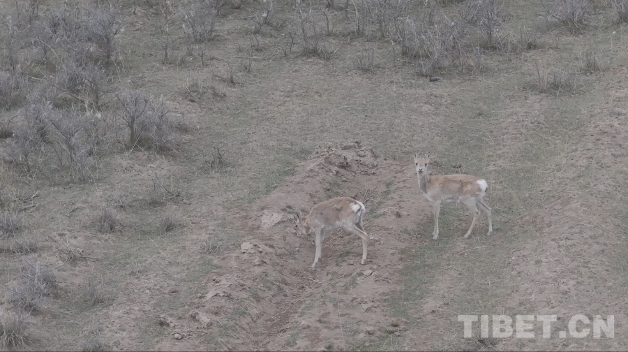 圖為無人機捕捉到的兩只雄性普式原羚 青海省文化和旅游廳供圖