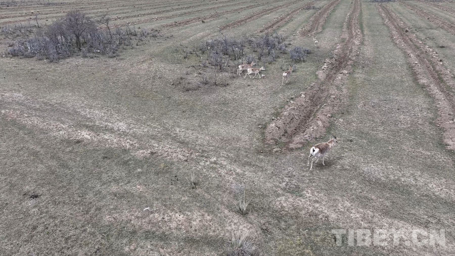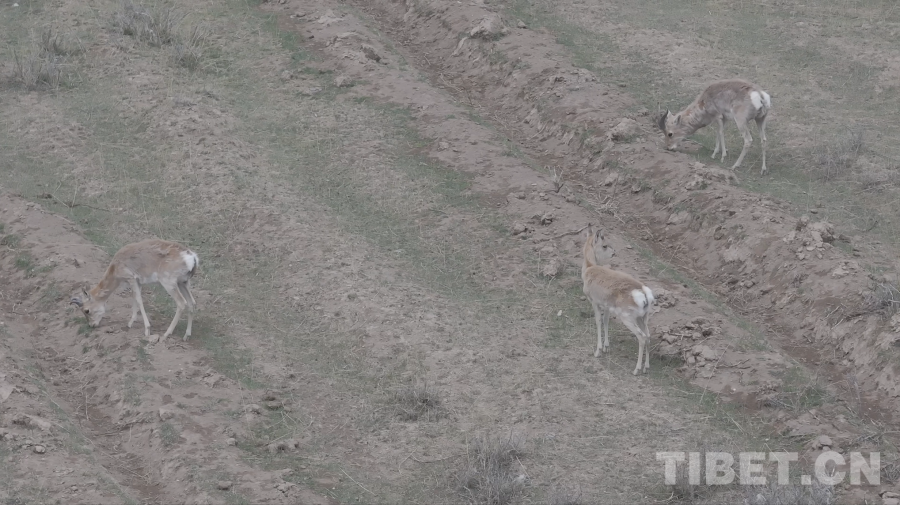 圖為無人機捕捉到的珍貴的野生普式原羚影像,它們的夏季被毛呈棕黃色,可以較好地融入周邊環(huán)境,同時性格警覺,對風(fēng)吹草動都很敏感 青海省文旅廳供圖
