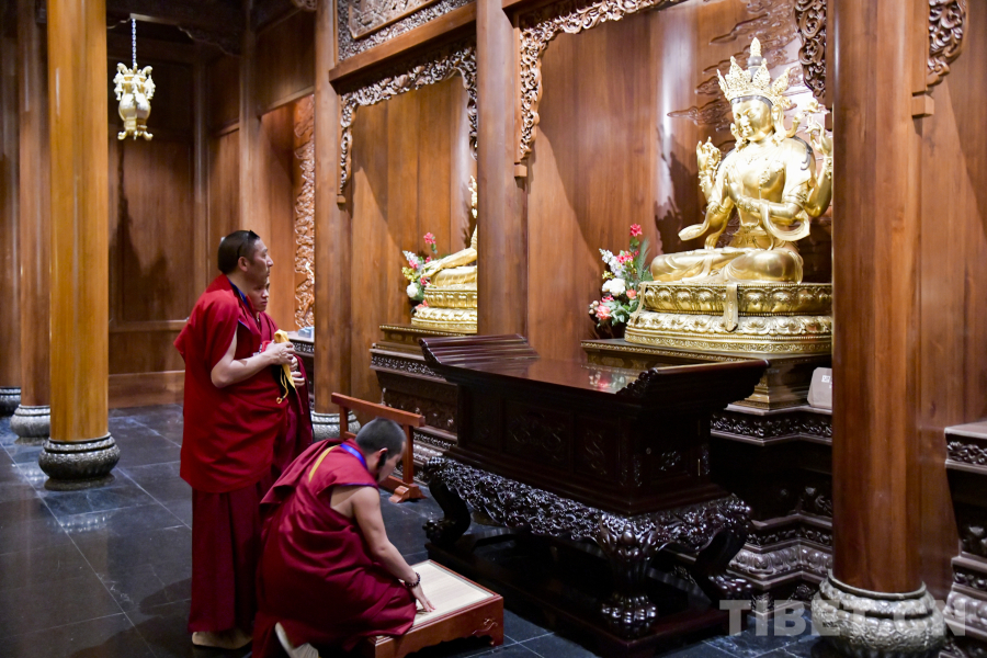圖為在普陀山觀音法界內(nèi)西藏佛學(xué)院學(xué)員了解不同的觀音文化 攝影:趙振宇