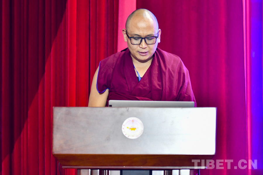 來自西藏佛學(xué)院的經(jīng)師阿旺桑珠作了題為《著<辨了不了義論>的歷史背景及其影響》的報告,以探討《辨了不了義論》的創(chuàng)作環(huán)境與歷史背景為起點,論述該經(jīng)典從主題到用語,都以推動藏傳佛教健康發(fā)展為出發(fā)點,承擔起從了義、不了義角度闡釋佛教教義的重任,填補了藏傳佛教此前沒有相關(guān)著作的空白。