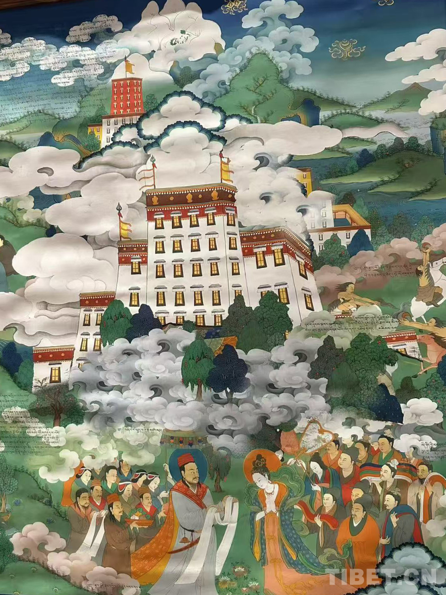 中國(guó)西藏網(wǎng)訊 近日,《獻(xiàn)禮盛世中華 鑄牢民族團(tuán)結(jié)——慶祝西藏自治區(qū)成立六十周年大型唐卡展》在西藏博物館開幕。本次展覽展出了長(zhǎng)達(dá)200米的唐卡《吐蕃贊普世系大唐卡金子明鏡》,向西藏自治區(qū)成立60周年獻(xiàn)上了一份厚重的文化賀禮。