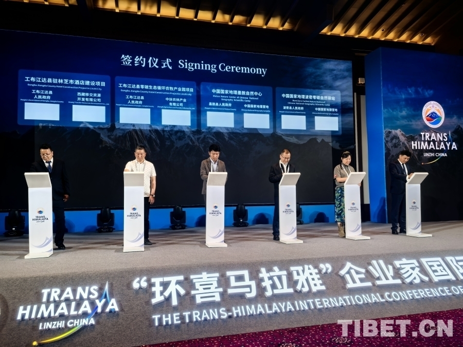6月27日,“環(huán)喜馬拉雅”企業(yè)家國際會議在西藏林芝舉行。圖為現(xiàn)場簽約儀式 攝影:王淑