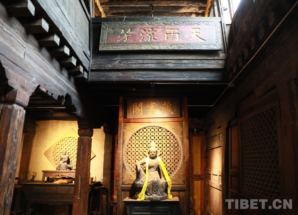 圖為位于四川省甘孜州鄉(xiāng)城縣青德鎮(zhèn)布機(jī)村的宗薩木府客廳中懸掛的“天雨流芳”匾 攝影:劉莉