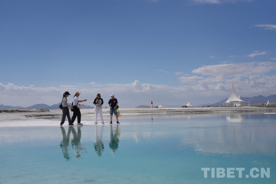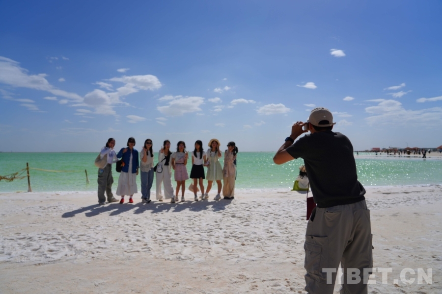 在海西蒙古族藏族自治州格爾木市,海拔2670米的察爾汗鹽湖,翠綠之美令人震撼,風(fēng)起波動,湖面如碎鉆鋪就的星河;天然形成的鹽花形態(tài)各異宛如珊瑚叢生,在陽光下,閃耀著璀璨的光芒;浮在鹵水上的“萬丈鹽橋”延伸至天際,橫跨湖面,還有周邊的現(xiàn)代化采鹽船,輸鹵管道,車來車往,工業(yè)設(shè)施與自然景觀形成強(qiáng)烈對比。來自妙法寺劉金龍中學(xué)三位女生欣賞著美景,也紛紛討論這次令人驚嘆的“自然課堂”。鐘澄情同學(xué)不自禁感慨:“這里跟網(wǎng)上宣傳的一樣美!就像是上帝打翻的蘋果汁?!痹袂缤瑢W(xué)驚嘆道:“曾經(jīng)我只聽說過茶卡鹽湖,來到這里才知道察爾汗鹽湖是中國最大、世界第二大的鹽湖,面積相當(dāng)于56個(gè)茶卡鹽湖,鹽儲量可以讓全球80億人吃上兩千年?!倍S馨月同學(xué)更加震撼這里工業(yè)與自然相互交融的獨(dú)特魅力,直呼這是一座真正的“寶庫”!