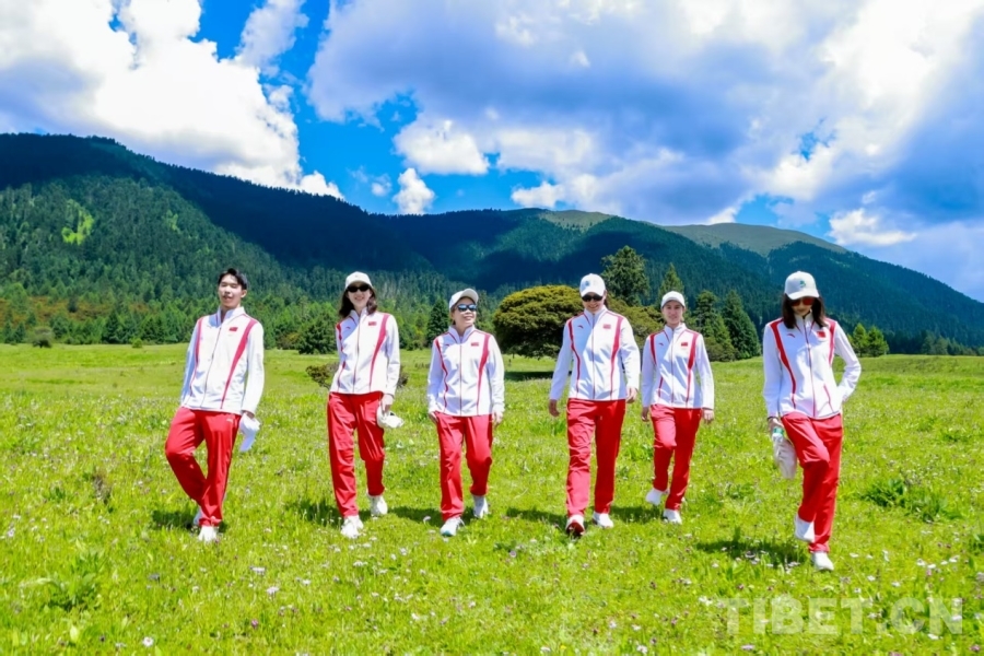 圖為奧運(yùn)冠軍走進(jìn)魯朗鎮(zhèn)高山牧場(chǎng),被牧場(chǎng)風(fēng)光深深吸引