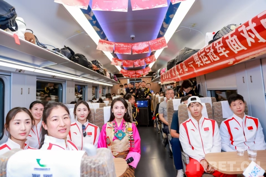 圖為7月19日,奧運冠軍一行乘坐復(fù)興號前往西藏拉薩