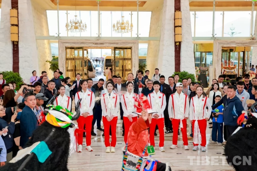 圖為奧運冠軍一行抵達(dá)西藏拉薩,受到熱烈歡迎