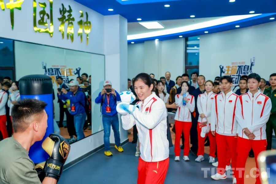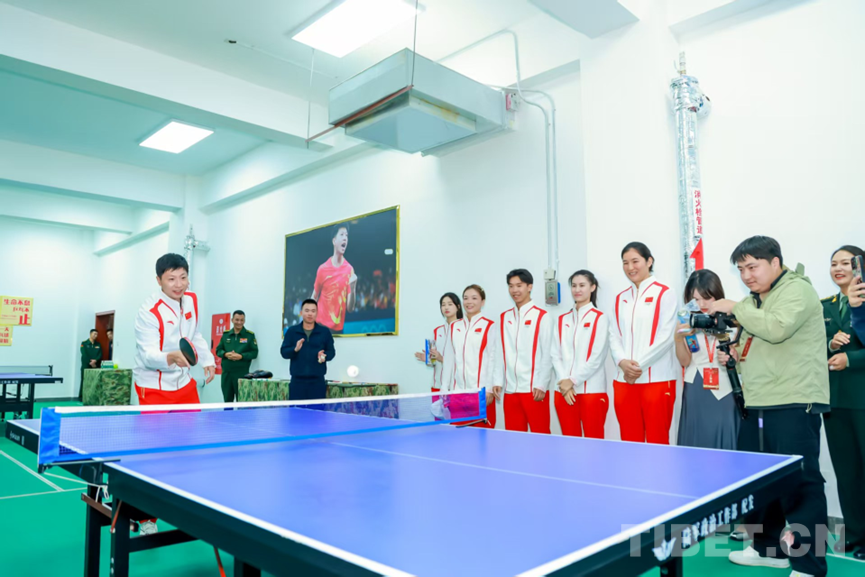 圖為奧運冠軍一行來到西藏軍區(qū)某部