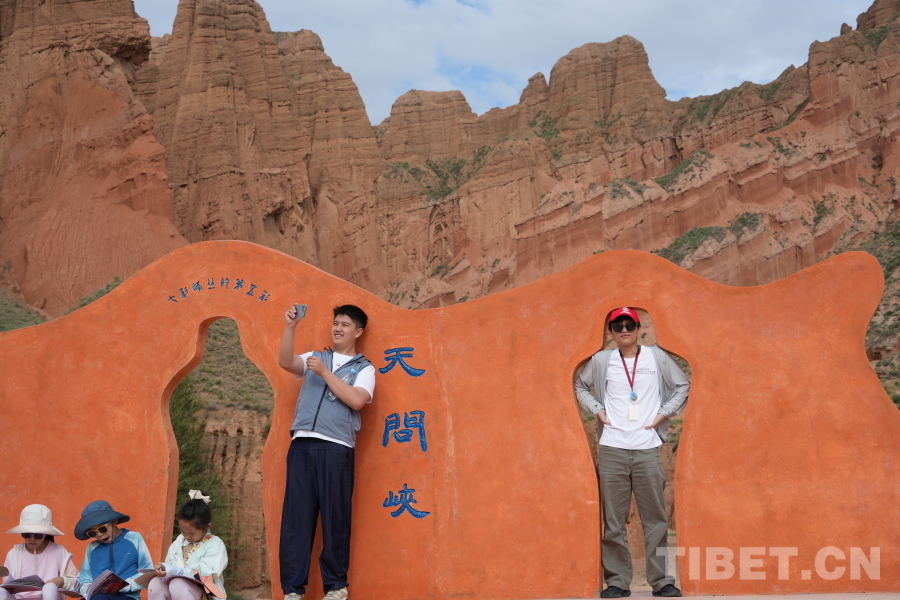 圖為胡俊賢(右二)在貴德國(guó)家地質(zhì)公園拍照留念 攝影:鄒慧
