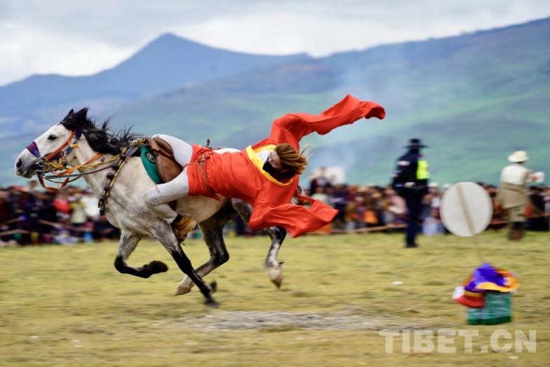 此外,來自奔戈鄉(xiāng)、禾尼鄉(xiāng)、曲登鄉(xiāng)和村戈鄉(xiāng)的馬隊還進(jìn)行了傳統(tǒng)馬術(shù)表演,馬背倒立、馬肚藏身、俯身拾哈達(dá)等精湛技藝,讓觀眾大飽眼福,充分感受到了理塘賽馬文化的魅力。
