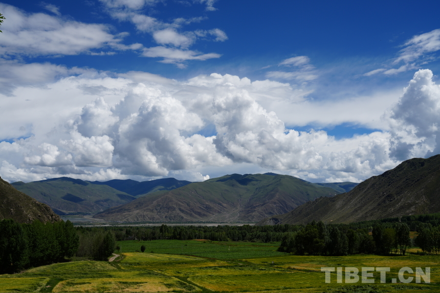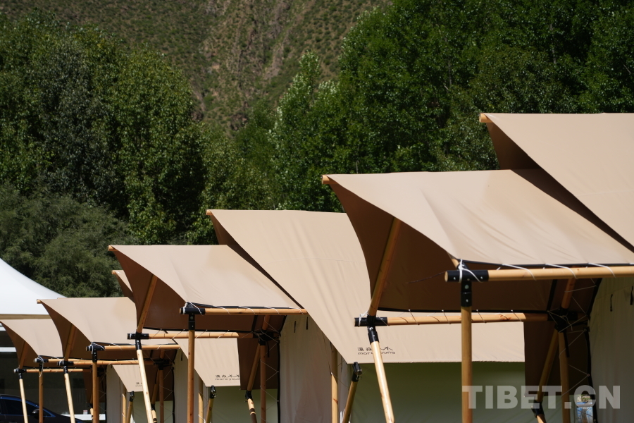 中國西藏網(wǎng)訊 站在觀景臺(tái)遠(yuǎn)眺,綠樹成蔭,一陣風(fēng)吹過,麥浪金黃;漫步色甫林卡,帳篷搭建得整整齊齊,牛羊悠閑地曬太陽;走進(jìn)望果賽馬場(chǎng),當(dāng)?shù)厝罕娨言缭缵s來搭建帳篷,各家各戶其樂融融。