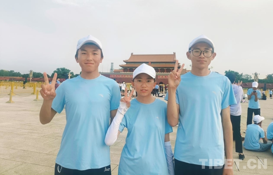 圖為參加“山河同脈·京華筑夢”研學(xué)活動的西藏日喀則定日縣中學(xué)生達(dá)娃次仁(左)、旦增桑旦(中)和古入曲桑(右)在天安門廣場上 攝影:趙釗