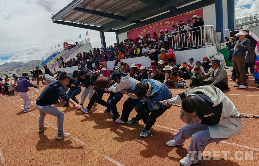 文藝演出落幕,文體活動接棒升溫。100米、200米賽道上,選手們?nèi)珉x弦之箭,奔跑中揚起的塵土里;拔河繩兩端,隊員們腳蹬大地、身向后仰,加油的號子聲震得地上的石子都在跳;抱沙袋、押加項目中,選手們咬緊牙關(guān)、全力拼搏,圍觀群眾的吶喊助威聲浪一波高過一波;穿藏服拌糌粑環(huán)節(jié),大家整理衣襟、系緊腰帶,青稞粉與礦泉水在手中交融,香氣里飄著“共話家?!钡臏厍椤宽椈顒佣际且淮巍靶呐c心的對話”,讓團(tuán)結(jié)的種子在互動中生根發(fā)芽。