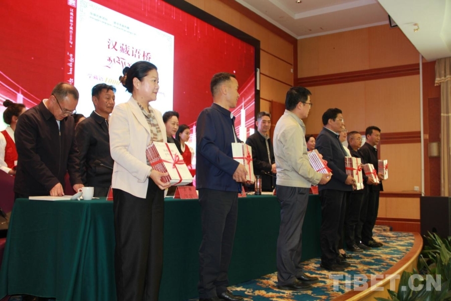 中國西藏網(wǎng)訊 在喜迎西藏自治區(qū)成立60周年之際,8月13日,《漢藏語橋:學藏語1000句+》新書發(fā)布會暨贈書儀式在拉薩舉行。活動現(xiàn)場,西藏自治區(qū)政府副主席、自治區(qū)藏語委副主任甲熱·洛桑丹增等向自治區(qū)藏語委成員單位、相關單位及街道、社區(qū)、村居代表贈送《漢藏語橋:學藏語1000句+》570冊。