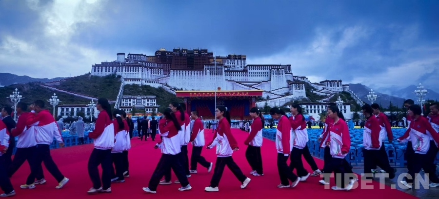 圖為拉薩市北京中學師生入場 攝影:劉莉