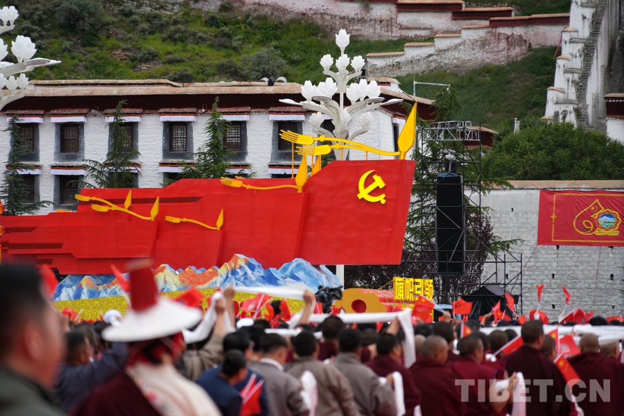 中國西藏網(wǎng)訊 西藏自治區(qū)成立60周年慶祝大會(huì)于8月21日上午10時(shí)在拉薩隆重舉行。伴隨著歡快的音樂,熱烈歡騰的群眾游行在“旗幟引領(lǐng)”彩車的帶領(lǐng)下正式開始。(中國西藏網(wǎng) 記者/王淑 馮重霖 劉莉 趙釗 姚浩然 楊眉笑 德吉卓瑪 趙振宇 賈華加 邊子捷 次旦拉姆 旦曲)