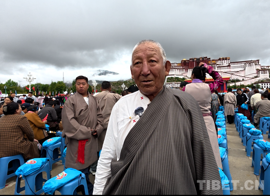 圖為66歲的次達瓦在慶祝大會現(xiàn)場