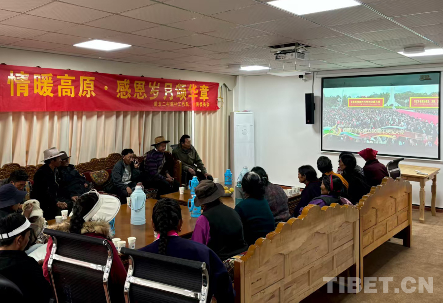中國(guó)西藏網(wǎng)訊 在西藏自治區(qū)成立60周年的喜慶日子里,西藏自治區(qū)昌都市邊壩縣普玉二村農(nóng)村幸福苑內(nèi)歡聲笑語(yǔ)、其樂(lè)融融。駐村工作隊(duì)舉辦“情暖高原·感恩歲月頌華章”主題慶?;顒?dòng),全村老少歡聚一堂,共同觀看西藏自治區(qū)成立60周年慶祝大會(huì)盛況,感受輝煌時(shí)刻。
