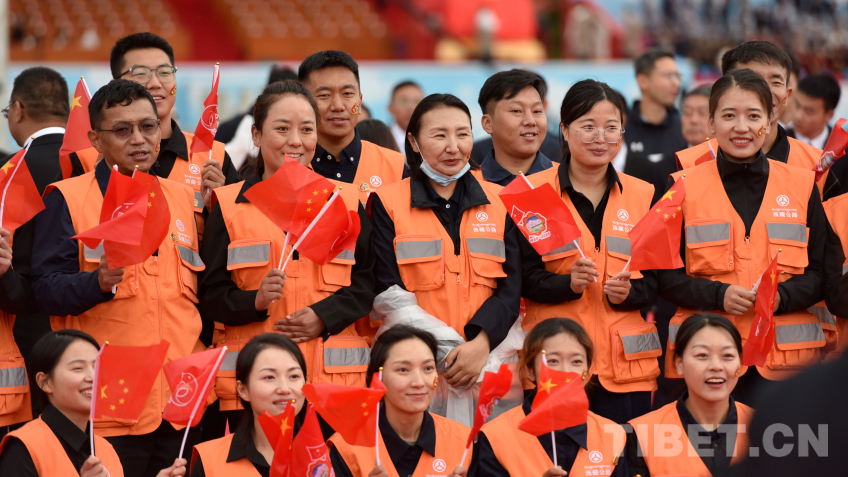 在西藏自治區(qū)成立60周年慶祝大會現(xiàn)場,一群身著橙色馬甲的群眾代表特別顯眼,他們是來自西藏交通系統(tǒng)各條戰(zhàn)線上的職工。他們能夠受邀來到布達拉宮廣場,見證西藏自治區(qū)成立60周年這一歷史性時刻,具有特別的意義。