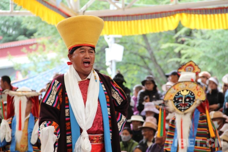 圖為8月24日,雪頓節(jié)期間拉薩宗角祿康公園內(nèi)藏戲展演 攝影:趙釗