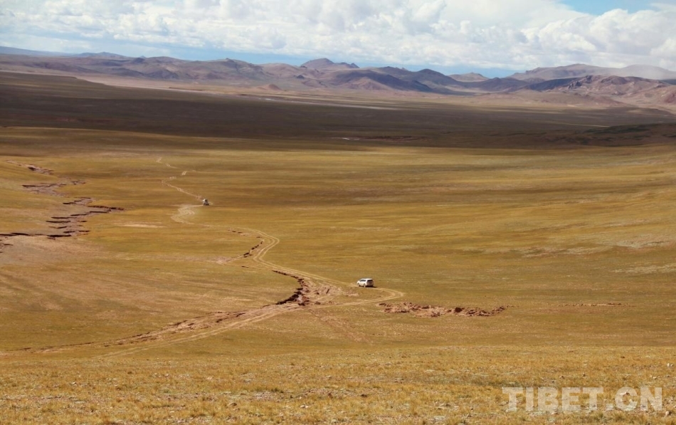 圖為廣闊的羌塘草原上道路蜿蜒 攝影:趙釗
