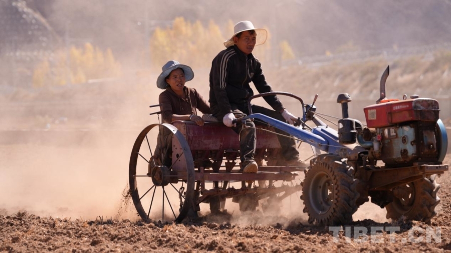 中國西藏網(wǎng)訊 十月的西藏山南市加查縣,雅魯藏布江畔秋意正濃。10月21日,記者在冷達(dá)鄉(xiāng)嘎瑪吉塘村看到,田間地頭處處是繁忙的冬播景象:拖拉機(jī)轟鳴著往來穿梭,鐵犁翻起濕潤的新土,泥土清香撲面而來;村民們手執(zhí)傳統(tǒng)農(nóng)具,沿著整齊的田壟緩緩前行,彎腰播撒下一粒粒飽滿的冬小麥種子。據(jù)當(dāng)?shù)卮迕窠榻B,嘎瑪吉塘村有著悠久的冬播傳統(tǒng)。每年10月下旬,當(dāng)?shù)乇銜_啟冬播工作,主要種植冬小麥。這些種子在土地中越冬,于來年7月迎來豐收。緊接著在8月,村民們又會馬不停蹄地開始新一輪播種,主要為牲畜種植飼料,形成了一年兩熟、土地不休的良性循環(huán)農(nóng)業(yè)生產(chǎn)模式。(中國西藏網(wǎng) 記者/次旦拉姆)