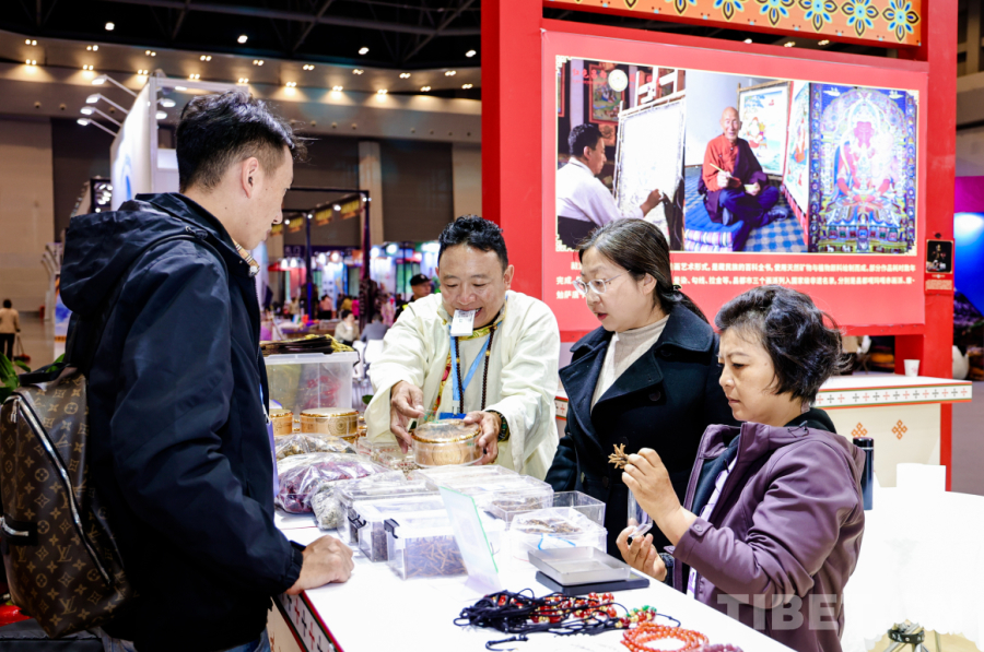 記者走進(jìn)昌都展館,整個(gè)展館呈現(xiàn)藏族傳統(tǒng)建筑的典型特征,厚重的墻體、錯(cuò)落有致的布局以及富有層次感的屋頂線條,精心融入康巴文化符號(hào)。昌都文旅攜9家非遺企業(yè),全方位展示唐卡、藏香、唐卡漆畫、民族手工飾品、蟲草、貝母、藏紅花等琳瑯滿目的文旅產(chǎn)品,進(jìn)館參與互動(dòng)、咨詢的游客絡(luò)繹不絕。