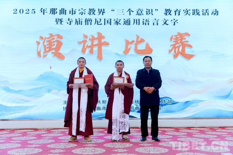 中國(guó)西藏網(wǎng)訊 11月13日,2025年那曲市宗教界“三個(gè)意識(shí)”教育實(shí)踐暨寺廟僧尼國(guó)家通用語(yǔ)言文字演講比賽舉行。來(lái)自那曲市10縣(區(qū))的22名寺廟僧尼站在演講臺(tái)上,用流利的普通話暢談學(xué)習(xí)心得、分享家鄉(xiāng)發(fā)展變化。