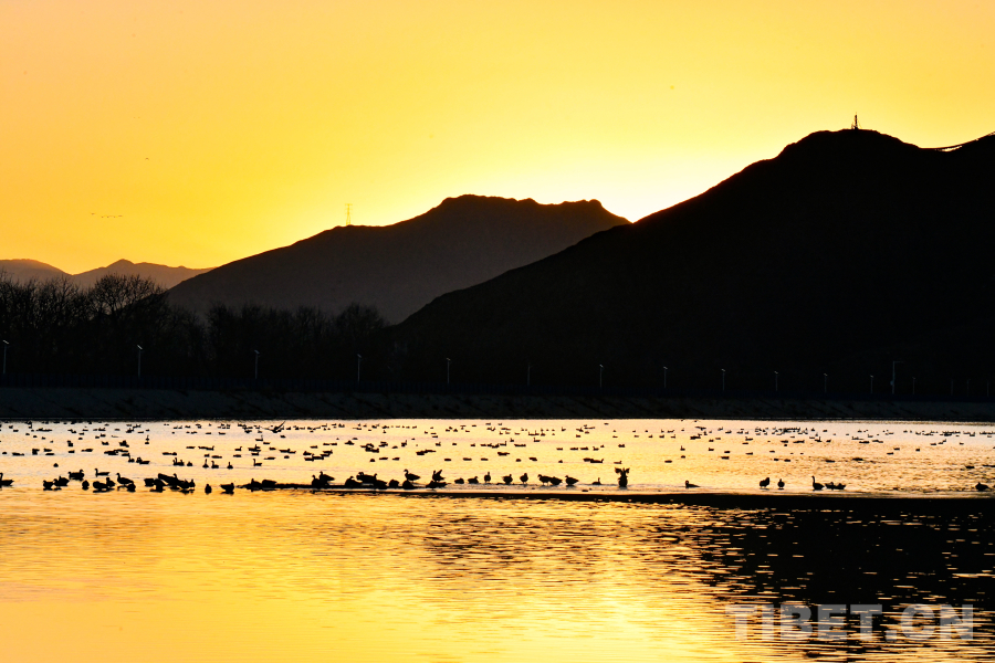 圖為拉薩市林周縣卡孜水庫內(nèi)大批越冬候鳥在此覓食休憩(攝于11月23日)攝影:趙振宇