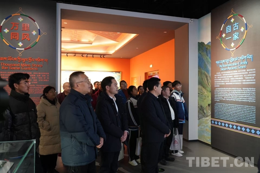 鄭堆在致辭中指出,西藏自古以來就是中國不可分割的一部分,一系列遺址、文物、檔案、文獻(xiàn)串聯(lián)起的歷史證據(jù)鏈,確鑿印證西藏與祖國同源同流、血脈相連,充分證明了中華民族共同體的形成和發(fā)展是人心所向、大勢所趨、歷史必然。中國藏學(xué)研究中心作為中國藏學(xué)研究的國家隊(duì),自成立以來始終堅(jiān)持“為維護(hù)祖國統(tǒng)一,加強(qiáng)民族團(tuán)結(jié)服務(wù);為西藏和四省涉藏州縣發(fā)展穩(wěn)定服務(wù)”的宗旨,圍繞西藏的歷史法律地位、西藏地方與祖國關(guān)系史、歷代中央政府治藏政策等進(jìn)行了全面、深入的研究,為中華民族發(fā)展史研究夯實(shí)了堅(jiān)實(shí)的基礎(chǔ)。藏研中心集全國藏學(xué)研究之力,先后完成了《西藏通史》和《西藏文化史》等重大項(xiàng)目,分別以八卷的體量、上千萬字的篇幅系統(tǒng)論證了西藏自古以來是中國不可分割的一部分,西藏文化是中華文化不可分割的有機(jī)組成部分。同時(shí),扎實(shí)推動(dòng)了《西藏早期文明史研究》《元以來西藏地方與中央政府關(guān)系研究》等重點(diǎn)課題,整理出版了《元以來西藏地方與中央政府關(guān)系檔案史料匯編》《中國第二歷史檔案館所存西藏和藏事檔案匯編》《中華大典·藏文卷》等一系列檔案文獻(xiàn)和史籍著作,為系統(tǒng)梳理西藏與其他民族和地區(qū)交往交流交融的歷史,推進(jìn)中華民族發(fā)展史研究夯實(shí)了扎實(shí)的史料基礎(chǔ),也使今天的展覽擁有了雄厚的研究基礎(chǔ)。從自在到自覺,中華民族從千萬年的榮辱興衰中攜手走來;從“社稷如一”到“書寫美麗西藏新篇章”,西藏的命運(yùn)始終與中華民族大家庭緊密相連。歷史鑄就的共同體,充分彰顯了中華民族國土不可分、國家不可亂、民族不可散、文明不可斷的共同信念。新時(shí)代,雪域兒女堅(jiān)信,在中華民族強(qiáng)國建設(shè)的新征程上,中華民族共同體必然會在我們的共同奮斗中愈發(fā)牢固。