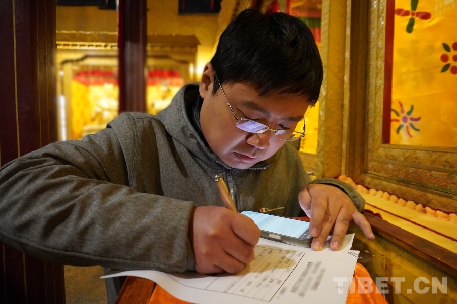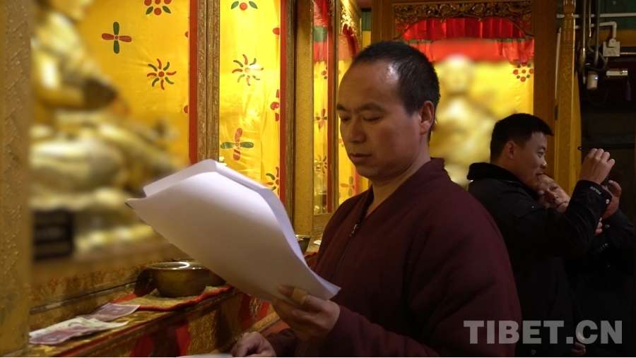 圖為敏珠林寺僧人對照詳單核查文物 攝影:張宇