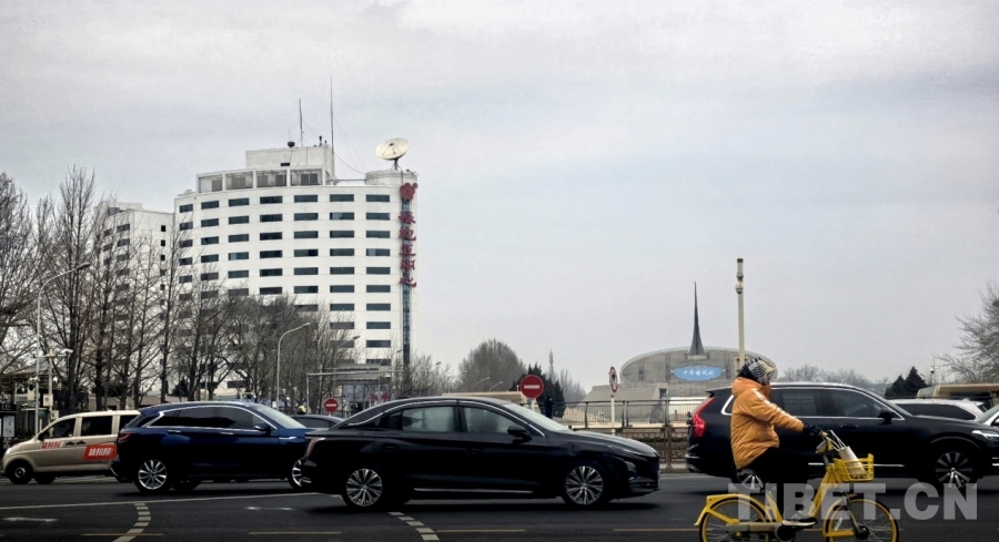 在北京西長安街南側(cè)遠(yuǎn)眺2026年全國兩會(huì)新聞中心所在地梅地亞中心 攝影:劉莉